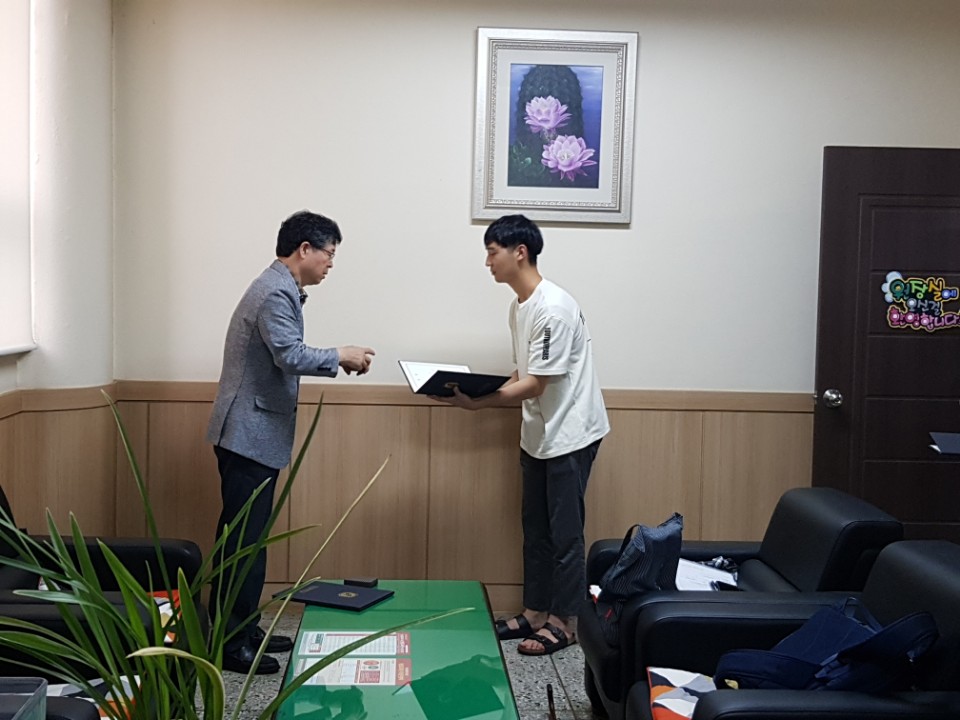 8월 27일 오후2시 평생교육원에서 2018학년도 1학기 비교과프로그램(영어) 시상식이 진행 되었습니다. 31명 중 2명은 성적우수 향상자, 2명은 성적우수자로 총 4명이 선발되어 각각 상장과 부상으로 문화상품권(50000원) 및 USB를 지급 하였습니다. 시상식 및 격려 말씀은 평생교육 원장님께서 하셨습니다. 아울러 2018학년도 2학기에도 비교과프로그램(영어)을 시행함에 따라 학생들의 많은 참여 부탁드립니다.